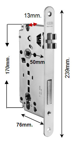 MEDIDAS: Entrada 50mm. Profundidad 76mm. / Largo Total 239mm