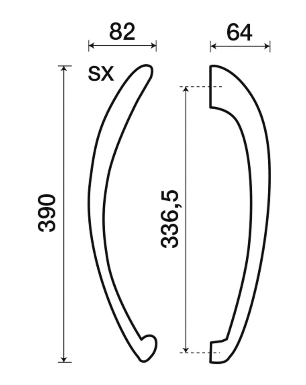MEDIDAS: 390mm. largo total x 82mm. y 336,5mm entre ejes