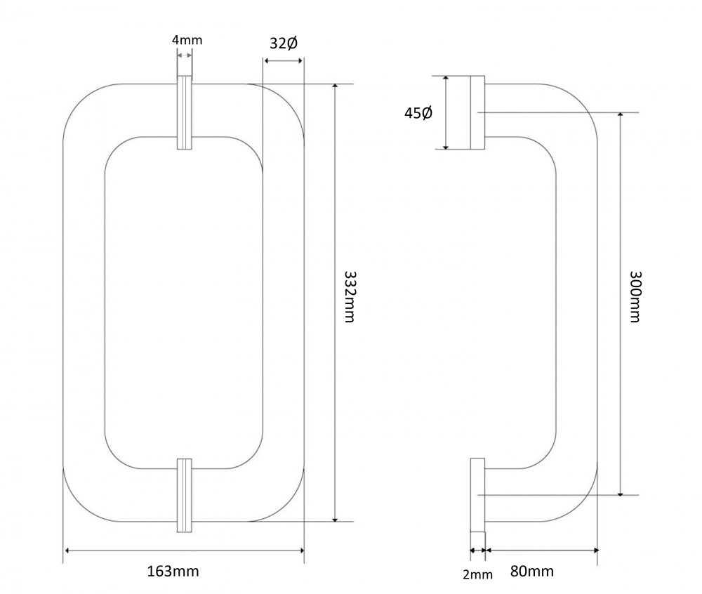 MEDIDAS: 32mm.Ø largo total 332mm. y 300mm. entre ejes.